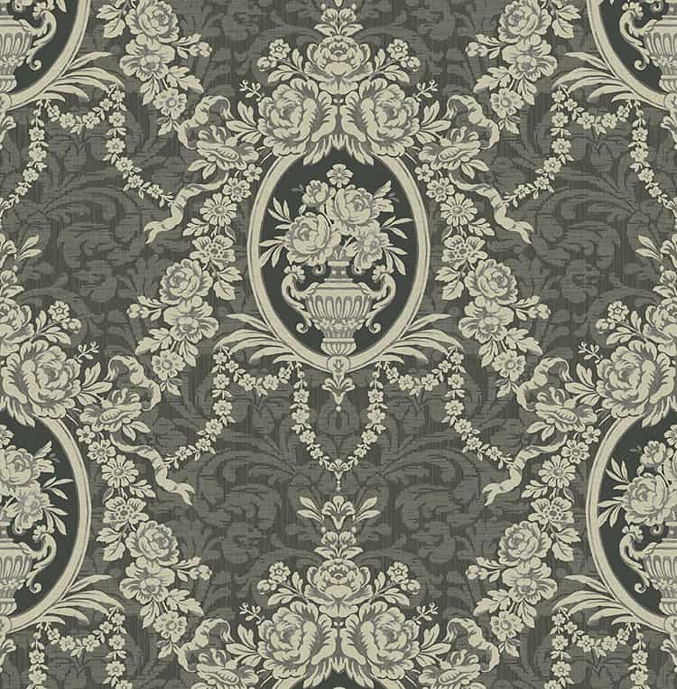 נושא: קלאסי עיצוב: פרחים, מדליונים גוון: שחור גוון הציור: אפור מידות: 0.68×8.63 מ